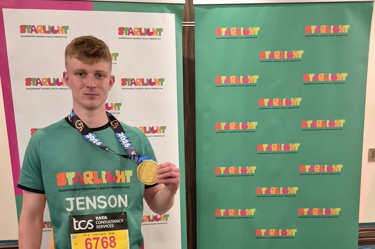 Former All Hallows Catholic School pupil Jenson Baxendale, 20, crossed the finish line yesterday in an impressive time of 3 hours and 27 minutes, despite challenging heat on the day. He ran the 26.1 miles in support of Starlight, a children's charity that provides entertainment and experiences for seriously ill young people.