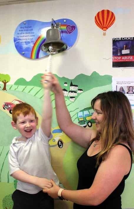 When patients ring the bell, with the help of their families and staff who cared for them, they recite the poem: “Ring this bell Three times well, It’s toll to clearly say My treatment’s done, This course is run, And I’m on my way.”