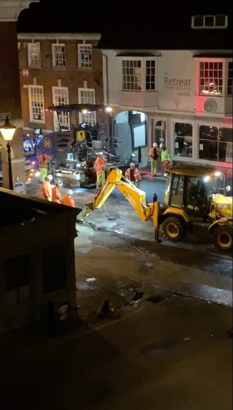 TO START with, a brief return to Castle Street, where the residents, starting on June 1, endured a week of nights disturbed by Surrey Highways contractors using a JCB with a pneumatic breaker to remove the existing road surface before resurfacing.