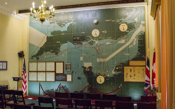Allied commanders led by General Eisenhower used the plywood map at Southwick House to plan and co-ordinate the Normandy landings, which were a crucial turning point during the Second World War. More than 70 years later, the map set to 0630 hours, D-Day H-Hour, 6 June 1944, has remained unchanged.