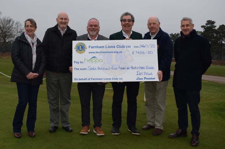 The Lions Club donation was raised from its annual golf day at Hindhead Golf Club (HGC). HGC captains Dickie Knight and Mary-Rose Seabourne had also chosen Hoppa as the charity to support during their tenure and raised a further £8,067 to bring the total to £15,500.