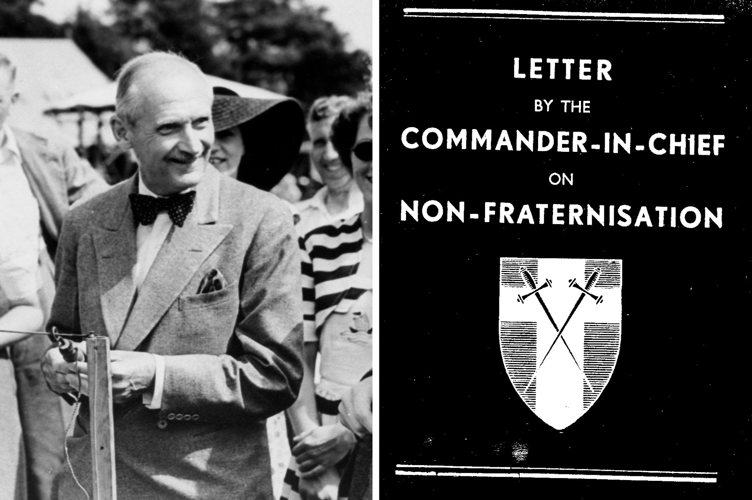 “Our occupation of Germany is an act of war of which the first object is to destroy the Nazi system. In streets, houses, cafes, cinemas, etc., you must keep clear of Germans, man, woman and child, unless you meet them in the course of your duty.