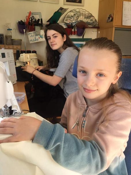 The Markillie family from Haslemere are among those taking part, with mum Wilma, of Studio4 Soft Furnishing, enlisting the help of daughters Cerys, ten (both pictured), and Arwen, 14, with the stitching, and Jenny, 13, to bake cakes to keep them all going.