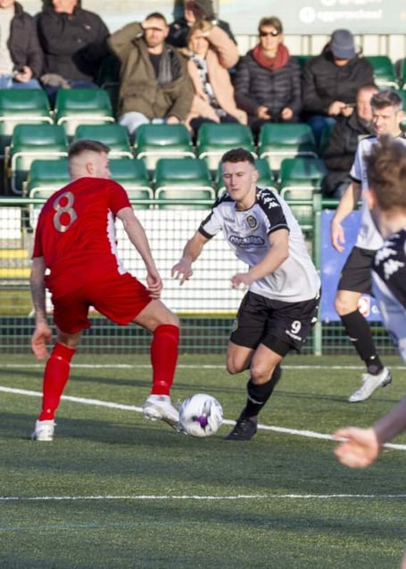 But Alton pressed on in a bid to claw their way back into the match and Bowerman got in behind the Folland defence, the goalkeeper performed a sliding tackle outside the box and the ball fell to Steve Black, but his goal-bound shot was blocked.